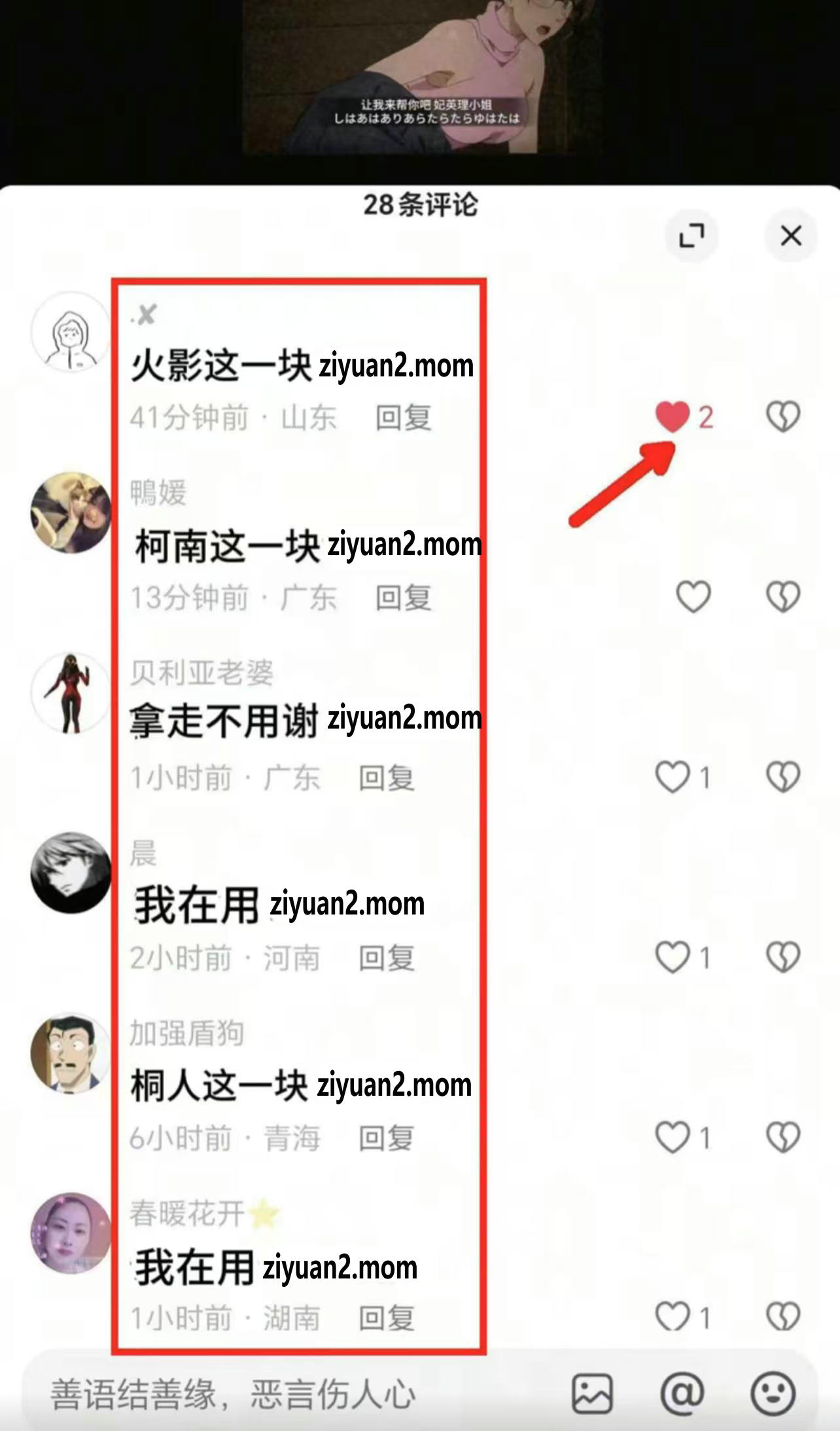 在每个视频的前3条评论下,评论刚才复制的文案